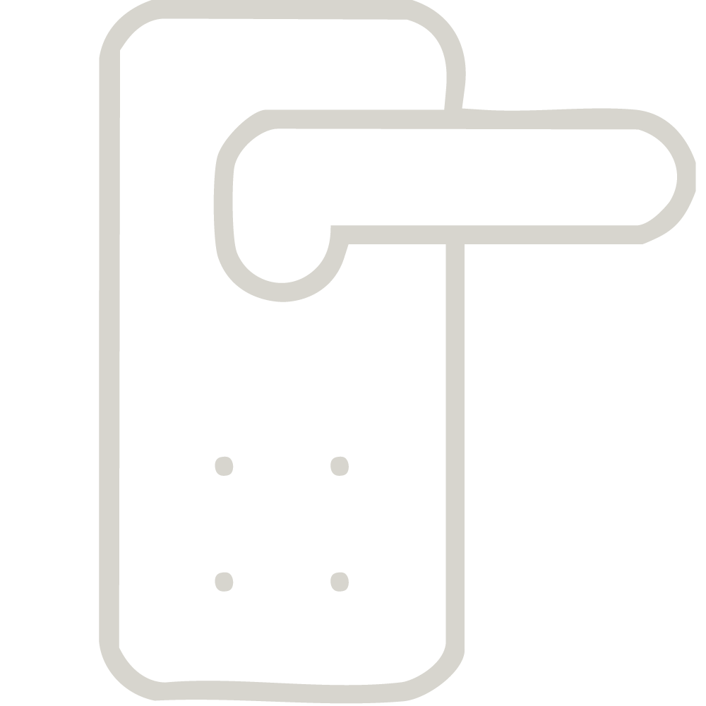 • Porta de entrada em madeira maciça com fechamento em guilhotina (vedação acústica).
