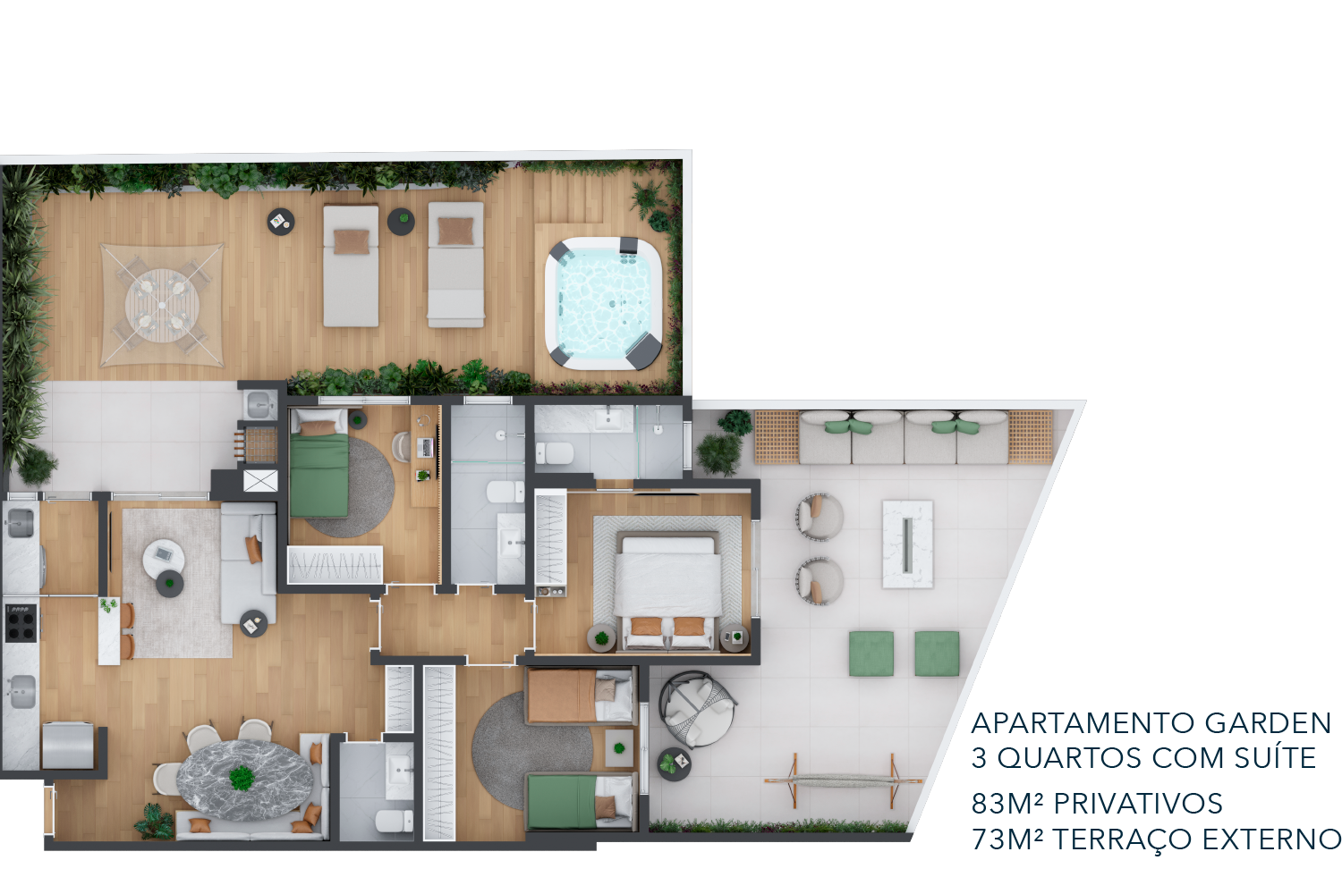 • Salão de festas, espaço gourmet e salão de jogos entregues decorados e mobiliados.
